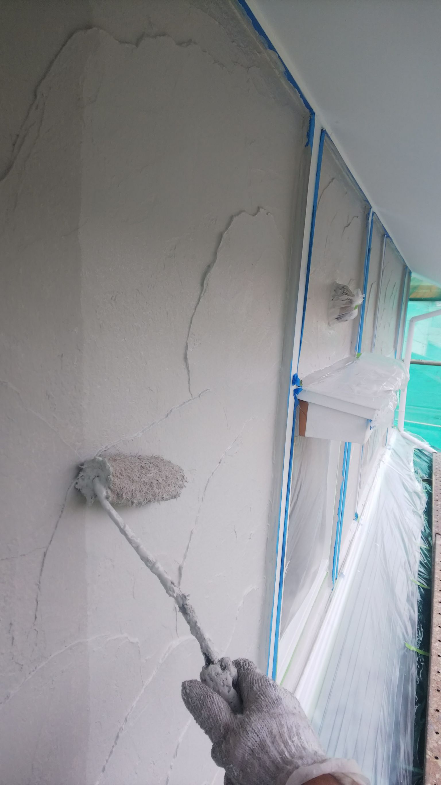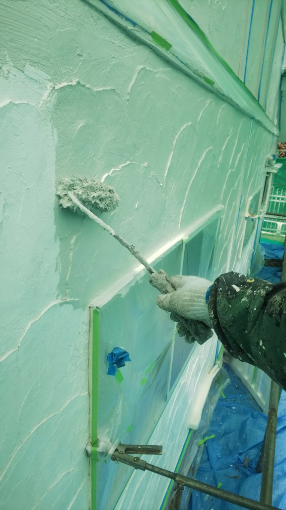 外壁の中塗り及び上塗り塗装。