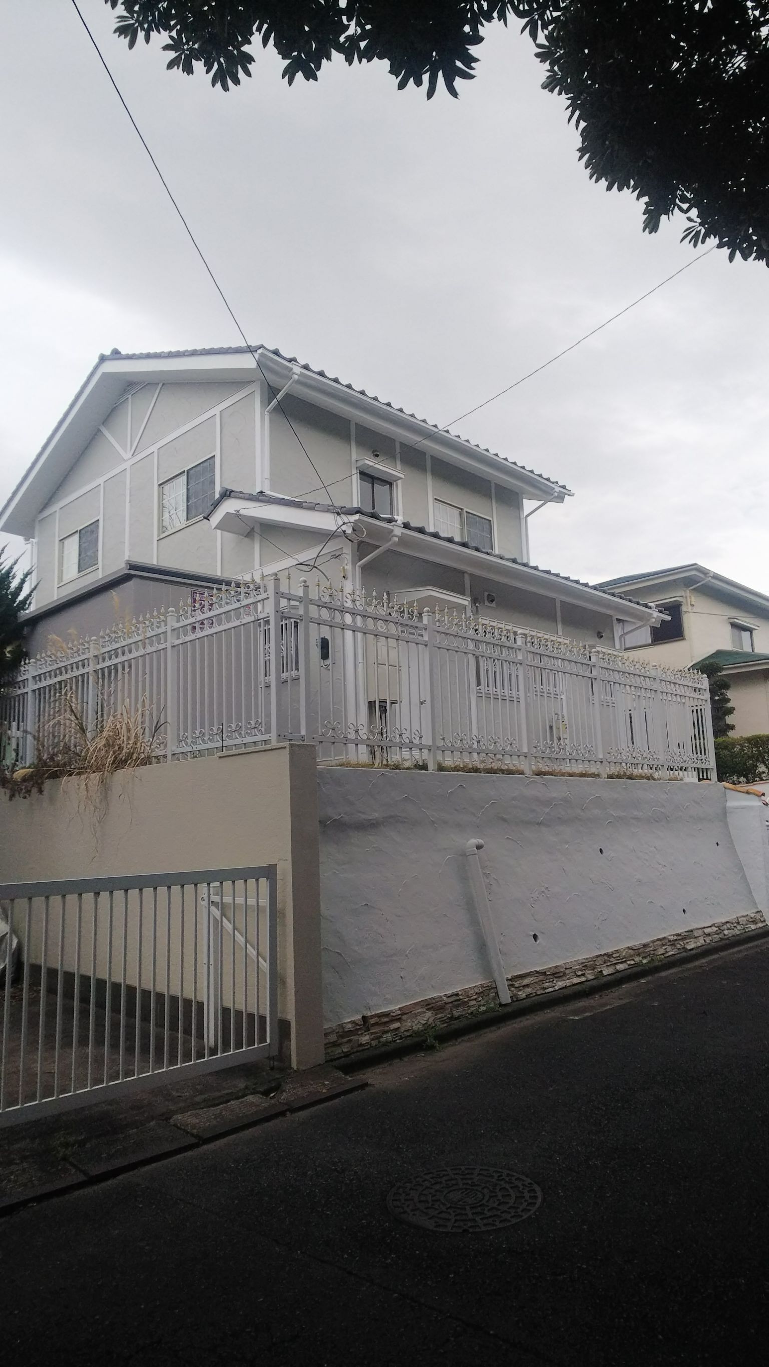 前回残りの木部、鉄部の上塗り塗装 ファインウレタン 白色にて塗布。