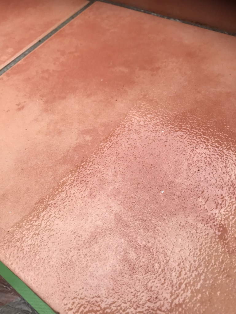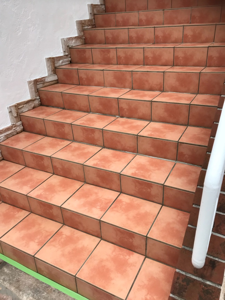 タイルの階段面に滑る止め塗装をいたします。