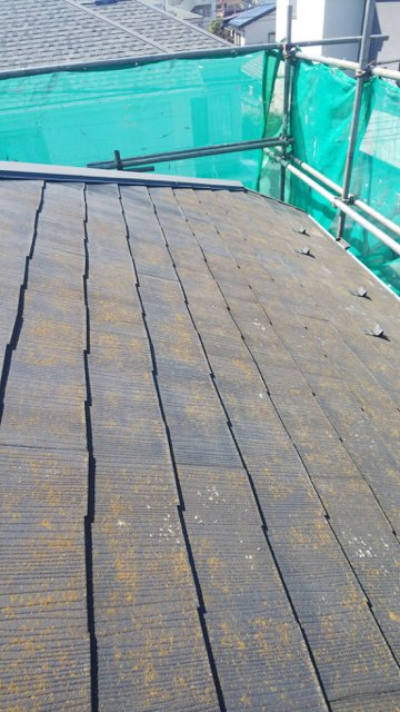 コロニアル屋根もうっすらコケが生えはじめているようです。また、雪止めも北面しかついておらず、今回西東面も雪止め設置予定です。
