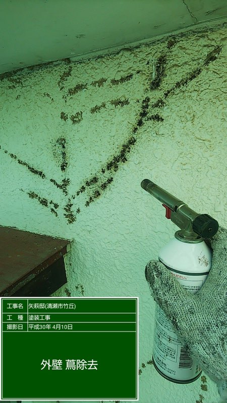 外壁のツタ取り作業。