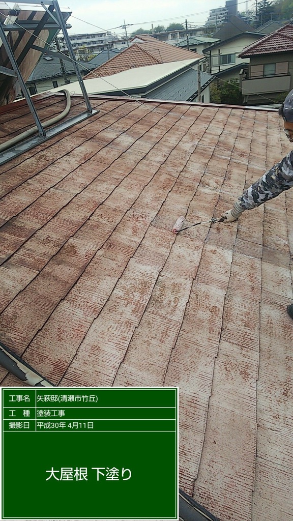 コロニアル屋根のプライマー塗装。