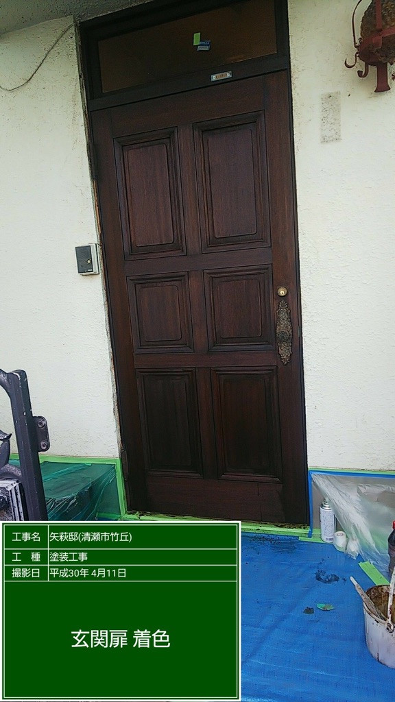 玄関ドアの剥離、漂白作業。及び着色塗装。