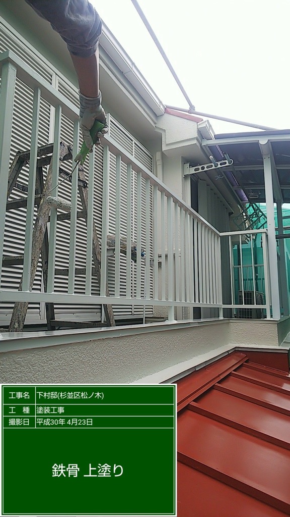 鉄骨及び1F雨樋塗装。 マイルドシリコン。