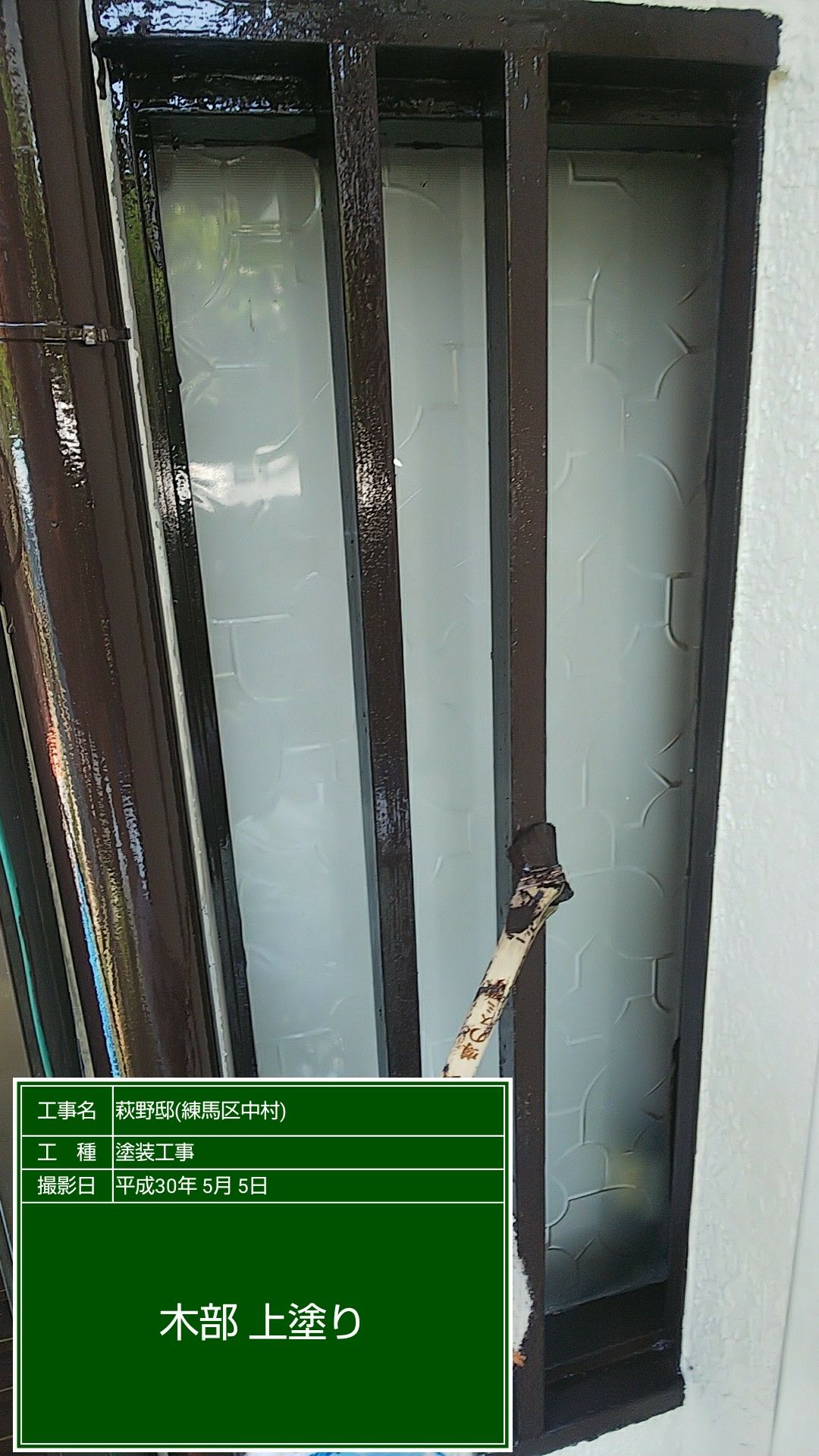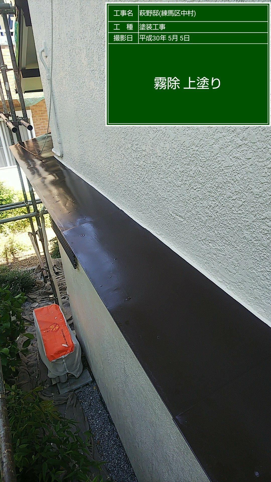 トタン霧除けその他木部、雑塗装。ファインウレタン255塗布。