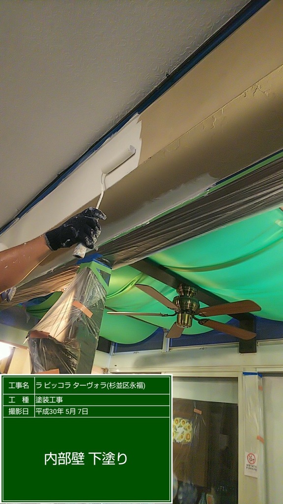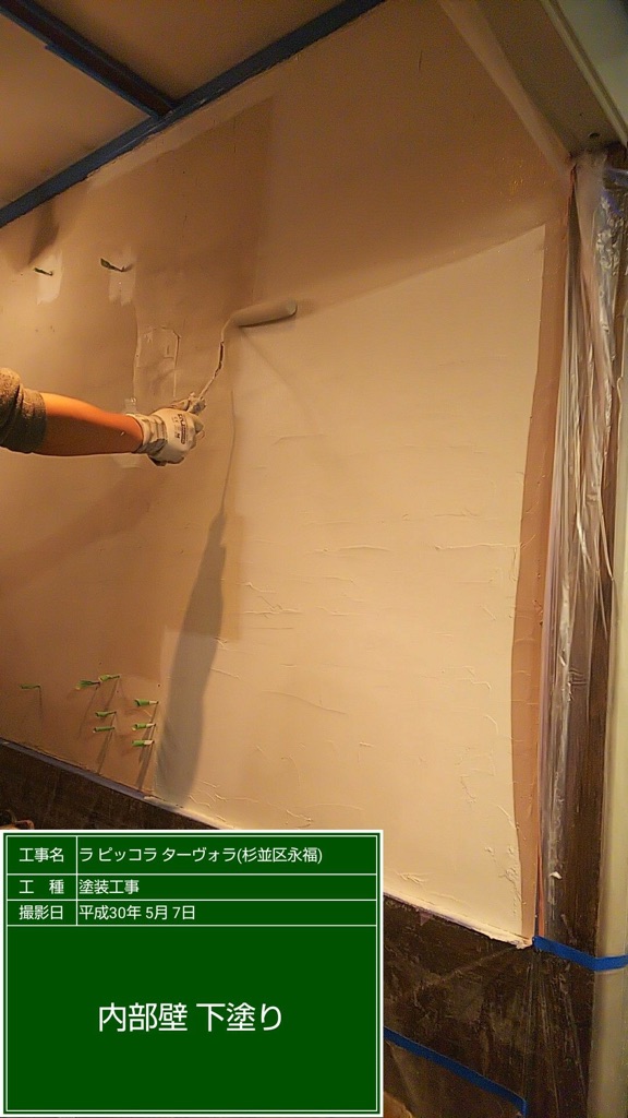 クラック等の補修。油シミを抑えるため弱溶剤タイプのケンエースをその個所に塗布。
