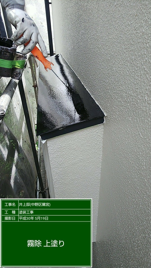 雨樋、トタン部分の塗装 マイルドシリコン黒色塗布。