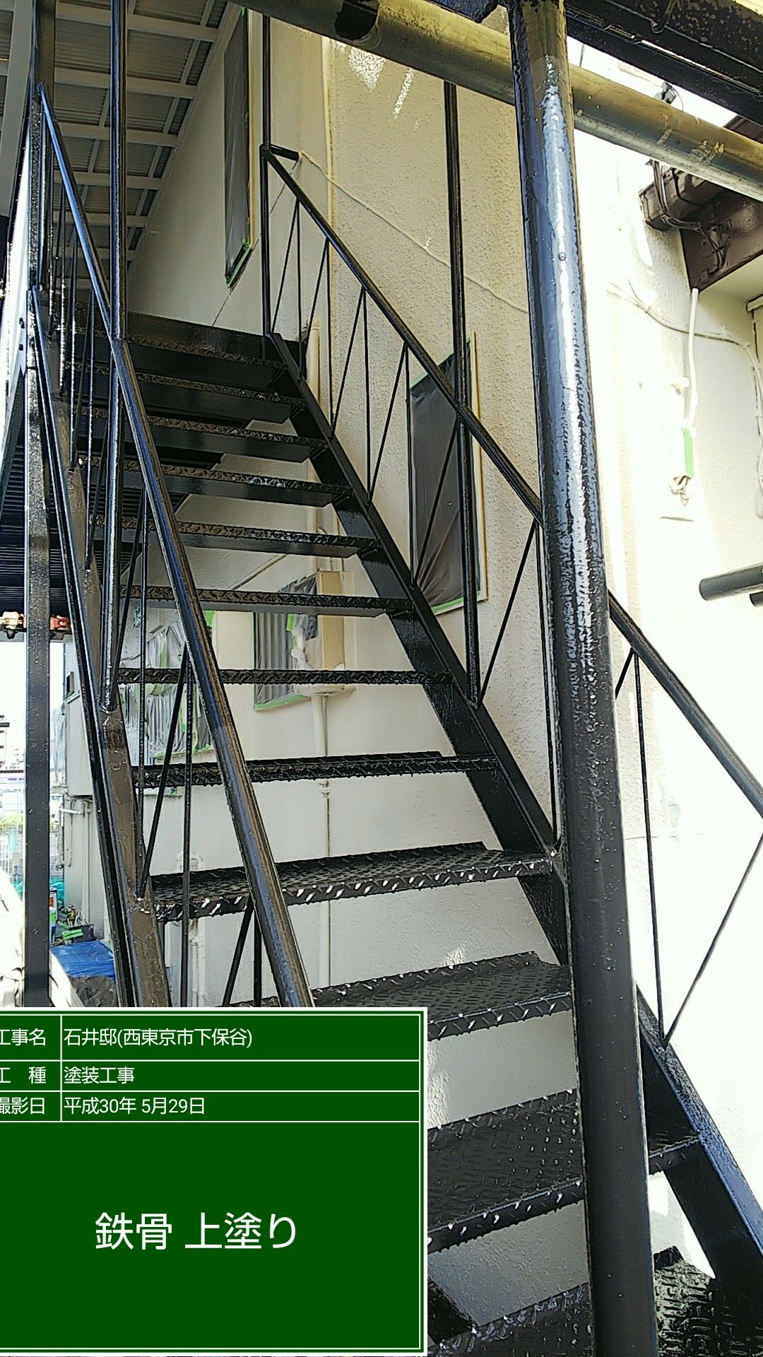 鉄骨階段塗装 マイルドシリコン黒色塗布。