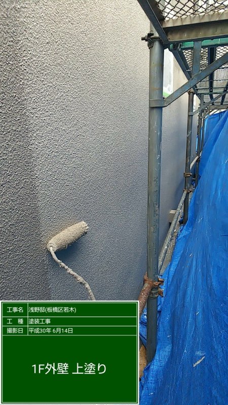 前日に続き外壁中塗り塗装 上部壁塗装。