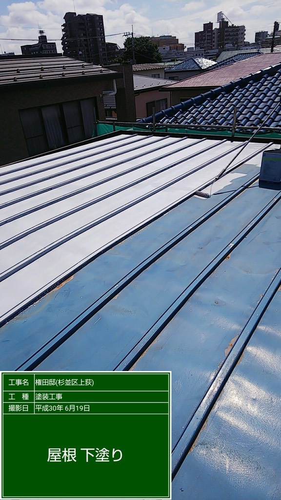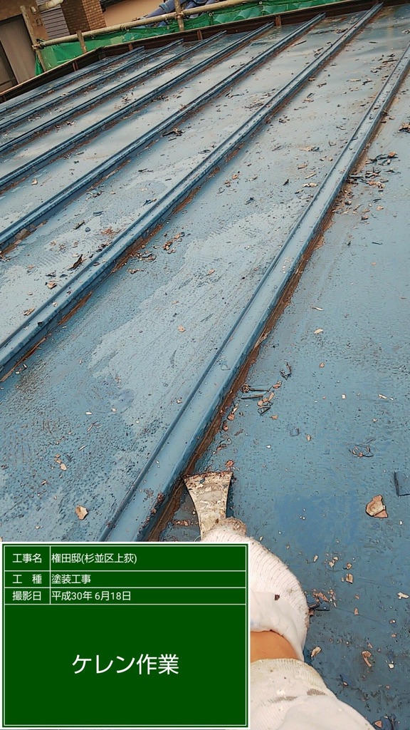トタン屋根の錆止め塗装。