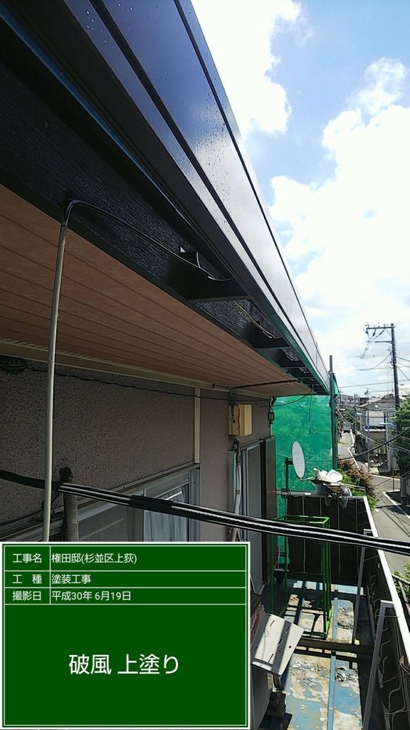 破風板の塗装。ファインウレタン色番号255にて塗装。