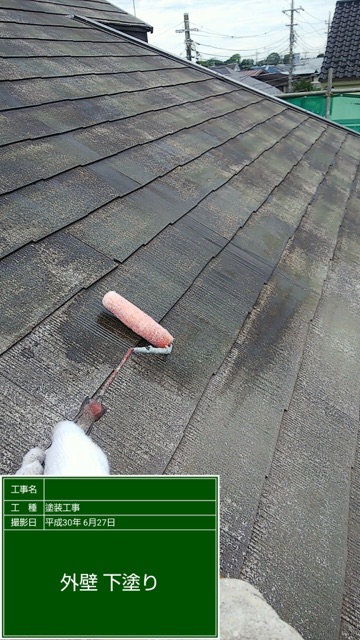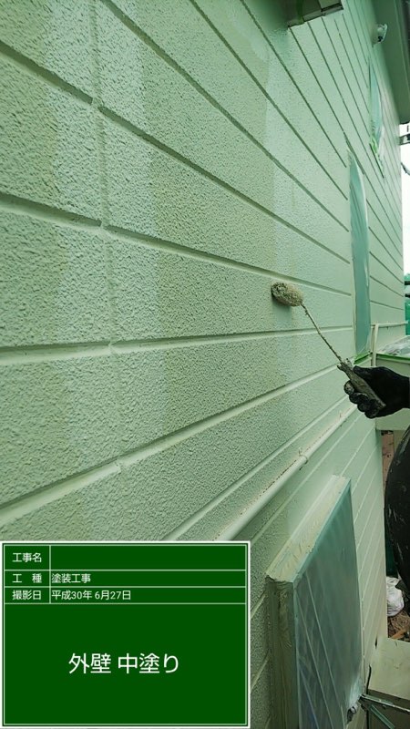 外壁中塗り及び上塗り プレミアムシリコン 色番号SR409にて塗装。