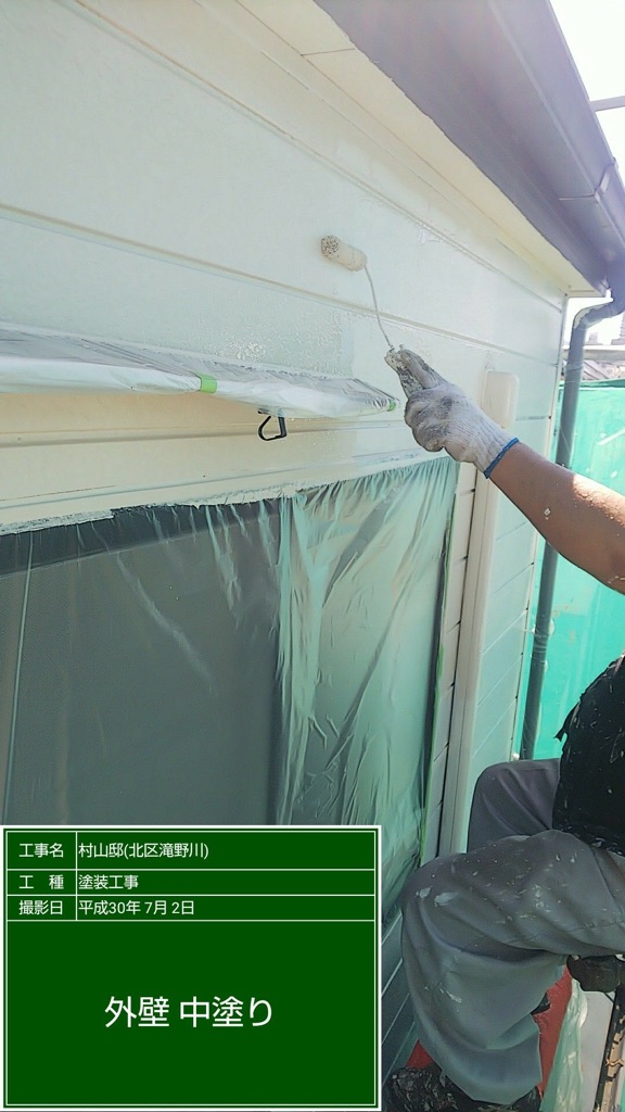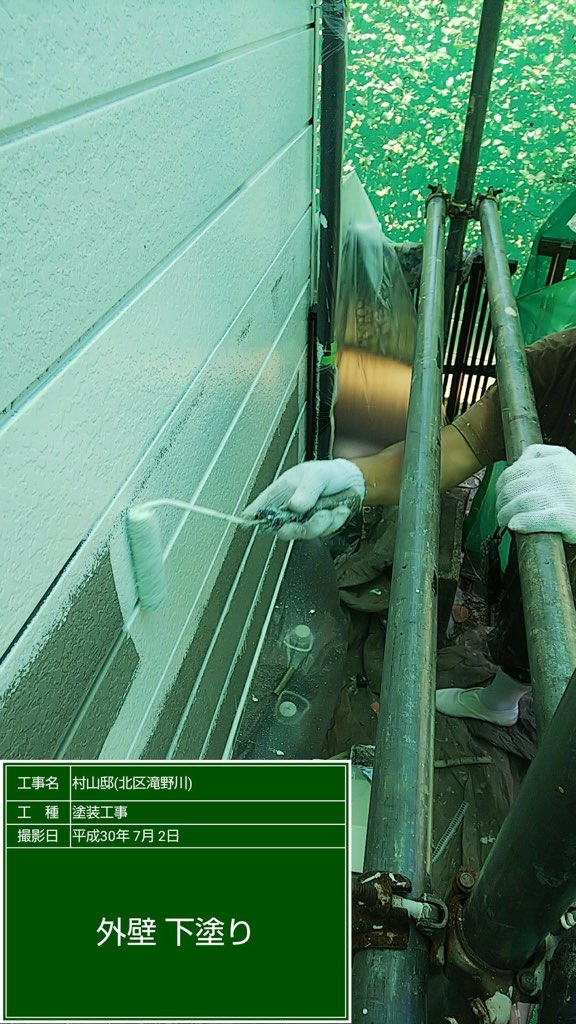 外壁下塗り 錆止め塗装。及び中塗り塗装 ファインウレタンND371。