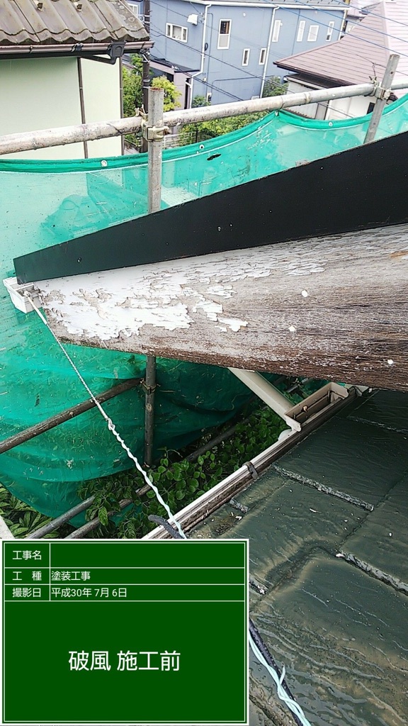 破風板は木製の作り。こちらも剥がれがひどいです。