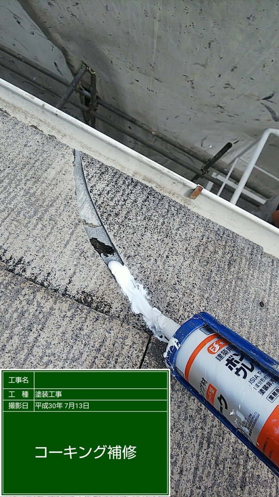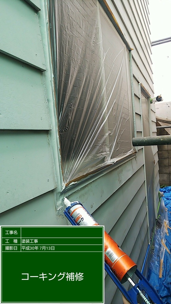 窓枠と屋根のコーキング補修。