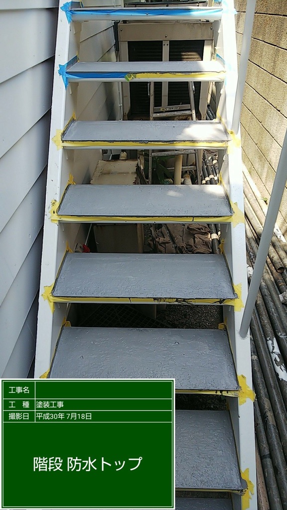 階段床部のトップコート塗装。