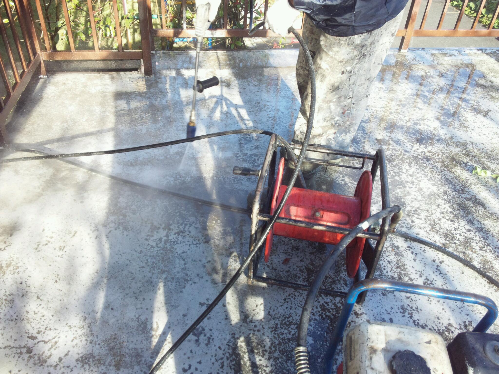 駐車場の上の防水床ですが、かなりひどく烈火して高圧洗浄をするとみるみるモルタルまで取れていきまいた。