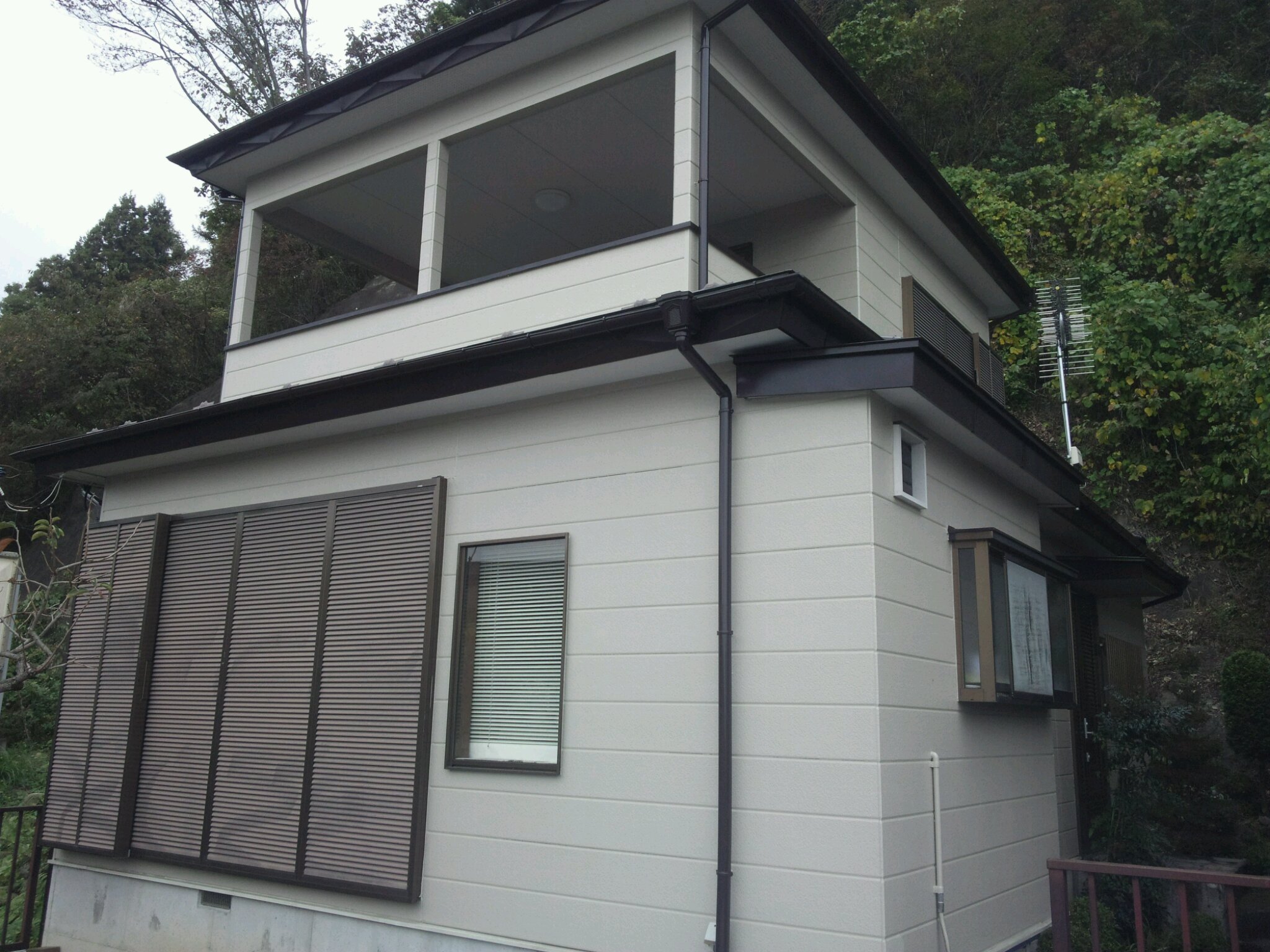 3、4日目で防水塗装、破風板、雨樋などの細かい施工。そして最後に足場の解体をさせていただき終了となりました。
