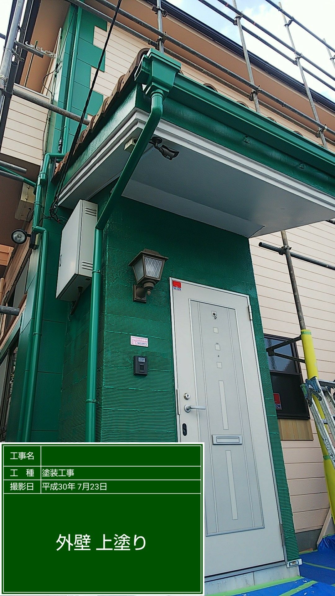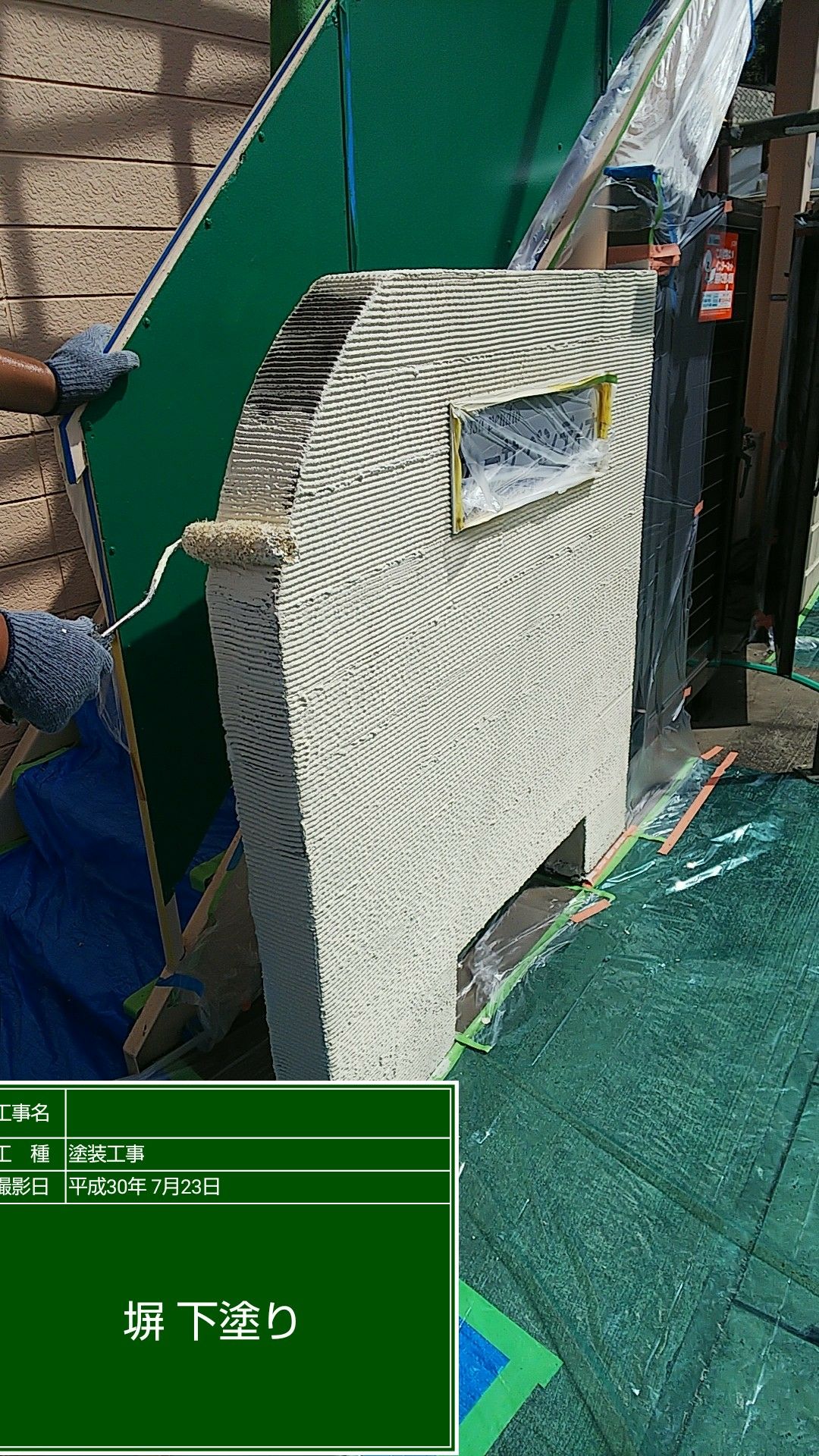 塀及び玄関外壁 フィーラー塗布。及びセラミシリコンにて中塗り上塗り塗装。