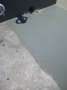 カチオン系セメントフィーラーを塗り、防水する前段階の下地を作ります。前防水の少しの残り跡や傷、穴等をこれで補修しながら防水を出来る状態にします。