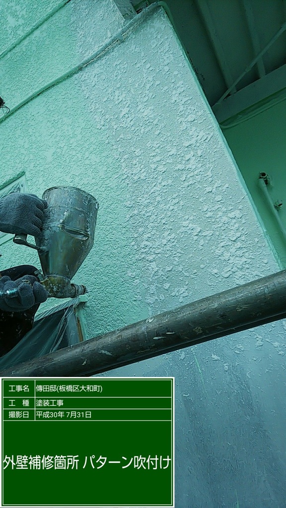 モルタル補修部のアクリルタイルによる吹付。