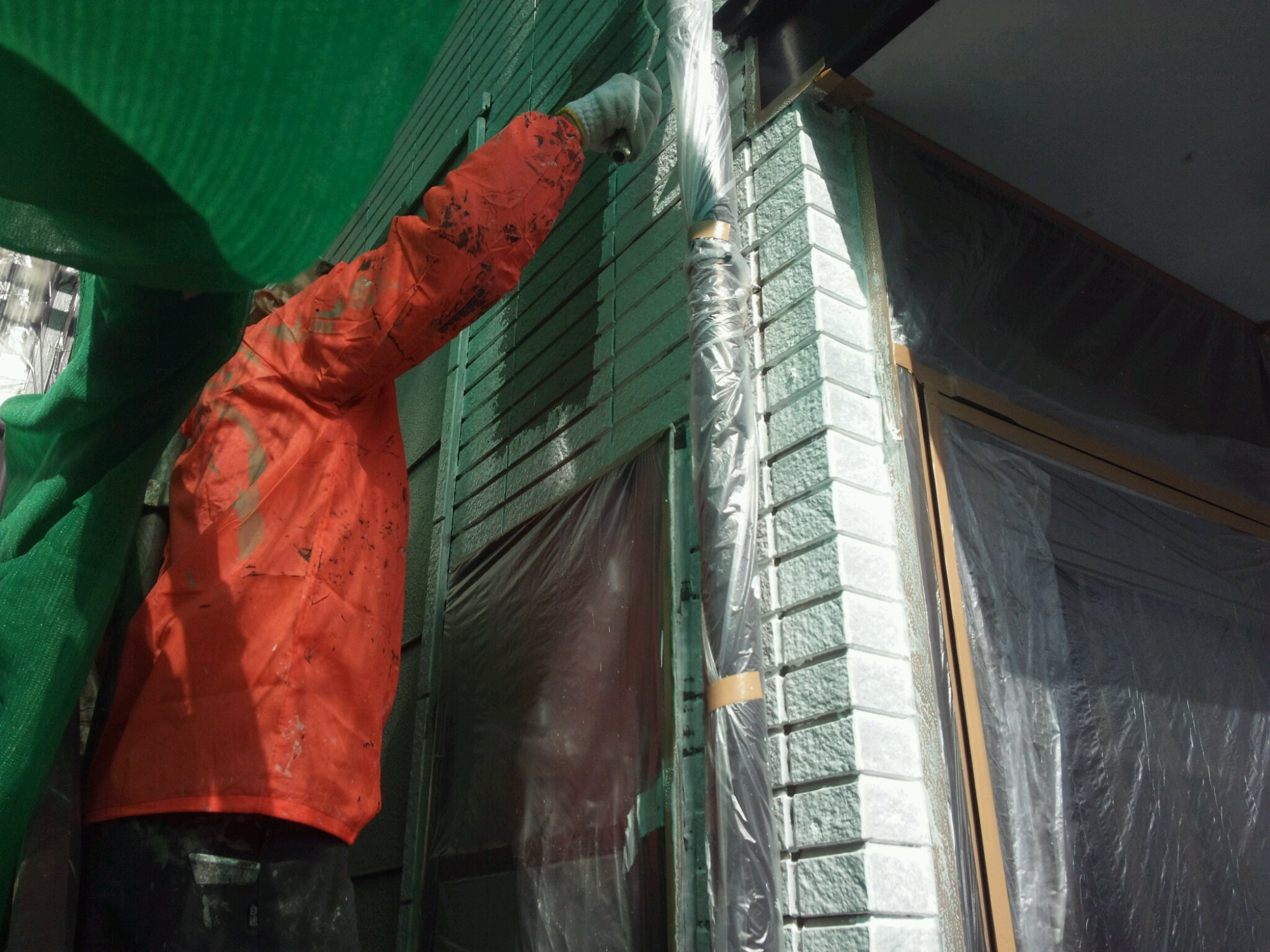 昨日の残りの養生を行い、続いて外壁のシーラー塗りでした。