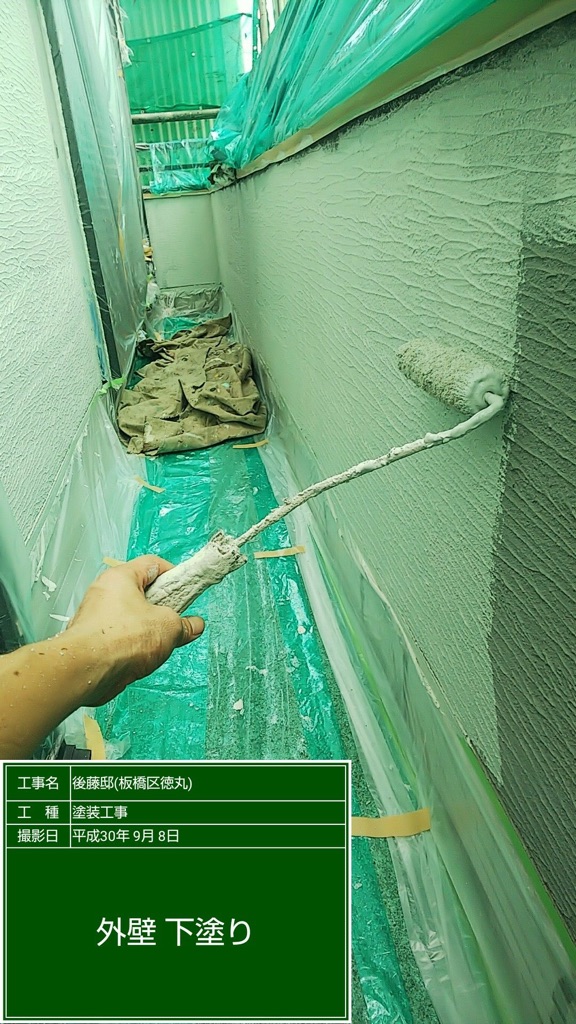 外壁下塗りフィーラー塗装。