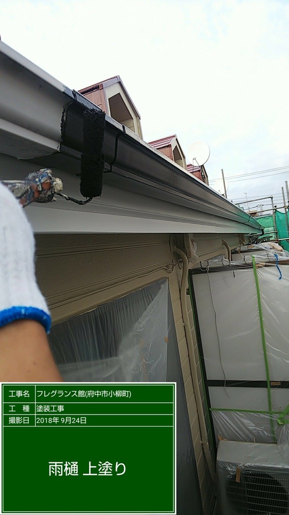 雨樋塗装 マイルドシリコン ココナツブラウン色。