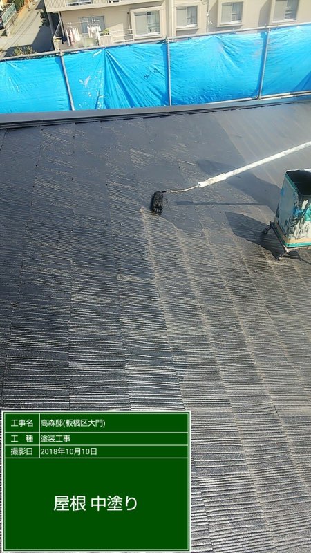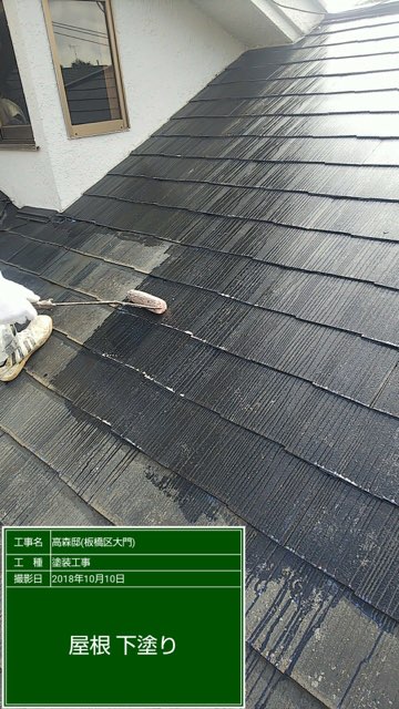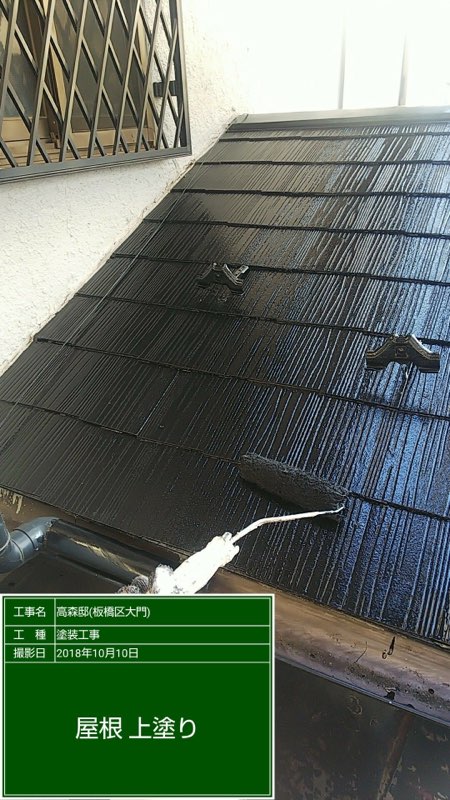 ヤネフレッシュ 黒色 中塗り及び上塗り塗装。