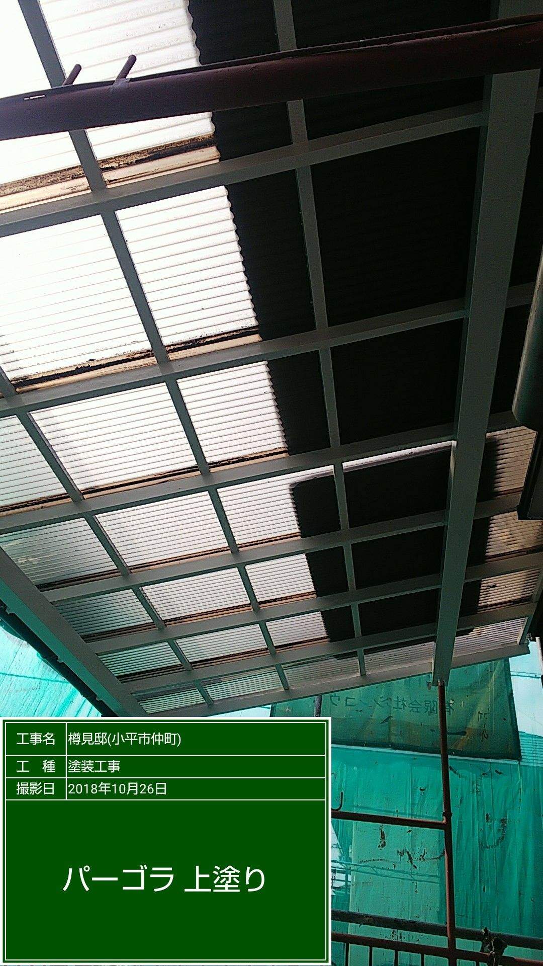 残りの木部、及び鉄部塗装。マイルドシリコン ココナツブラウン色にて。