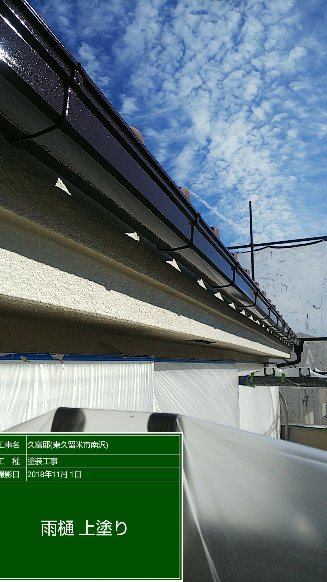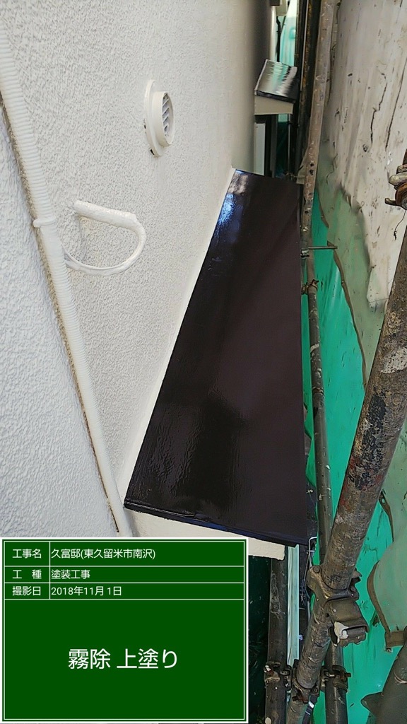雨樋、トタン及び鉄柱の塗装 マイルドシリコン ココナツブラウン色塗布。