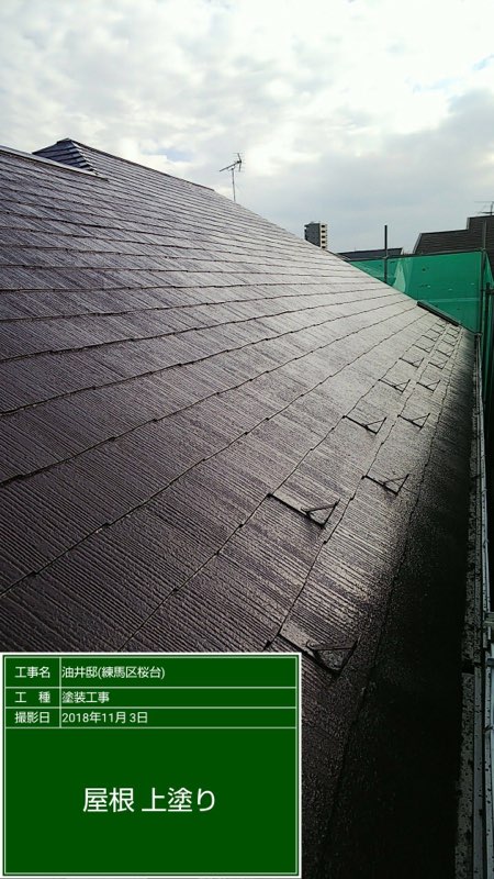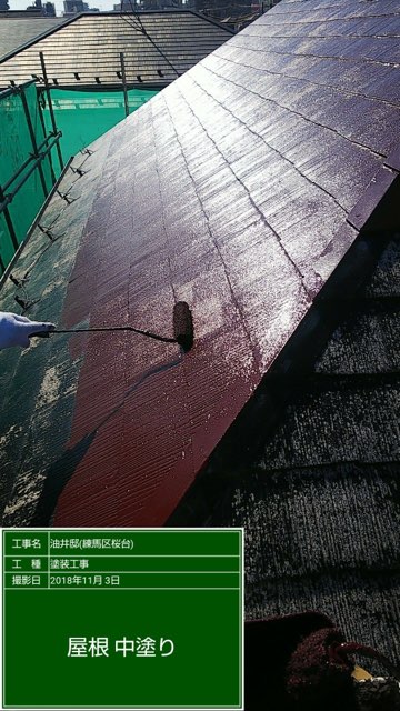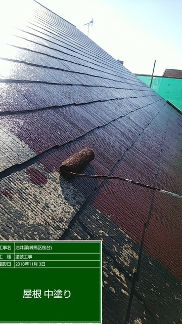 ヤネフレッシュ 中塗り及び上塗り塗装。色番号RC113にて。