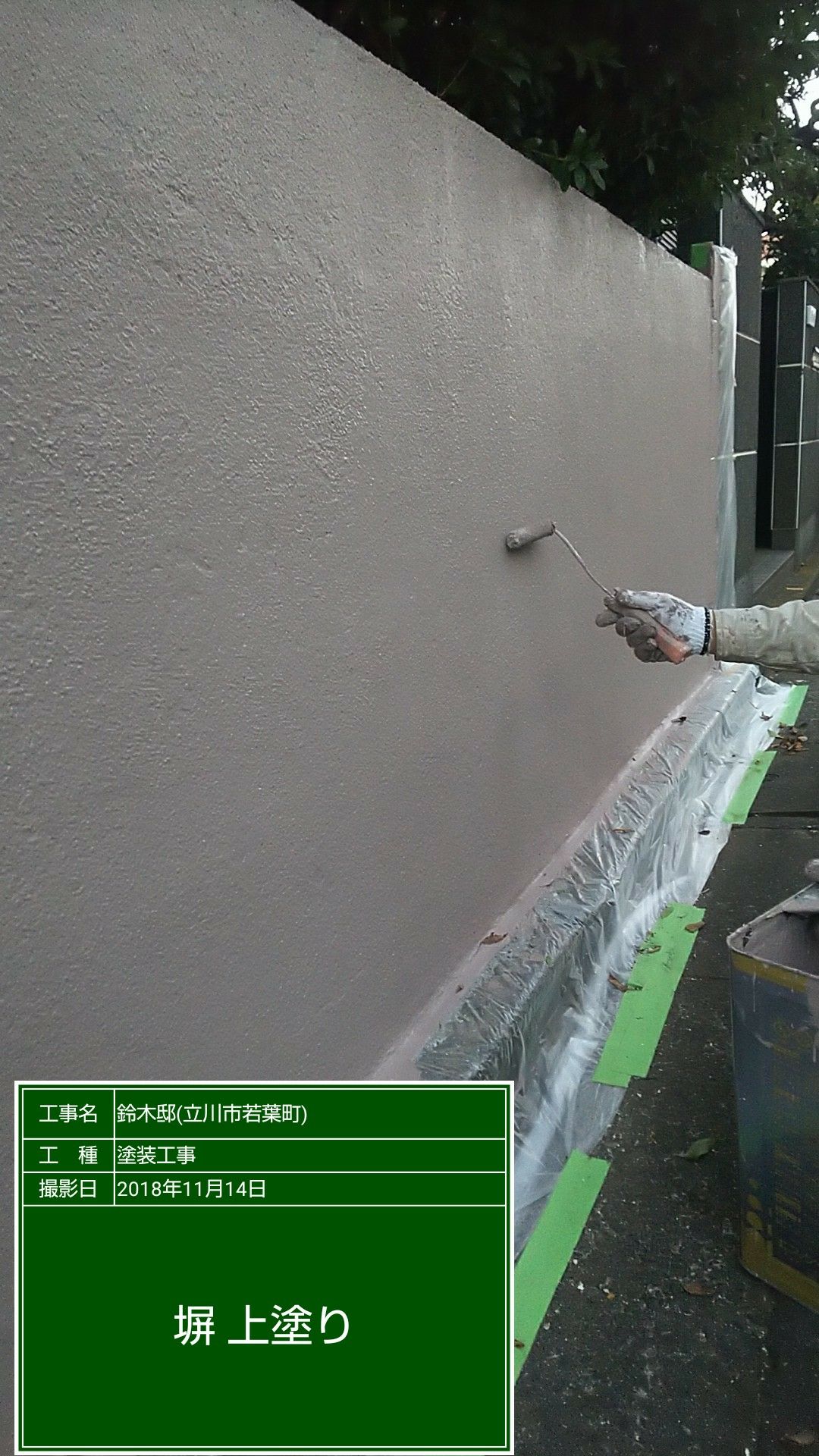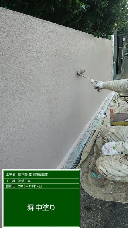 塀の塗装。劣化が相当ひどい為シーラー2回塗り、中塗りバインダー2回塗り、上塗りアートフレッシュ2回の容量で塗装いたしました。