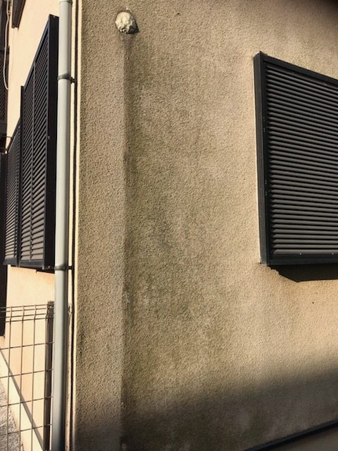 既存がリシン壁、コロニアル屋根になっております。全体的にカビが発生しています。