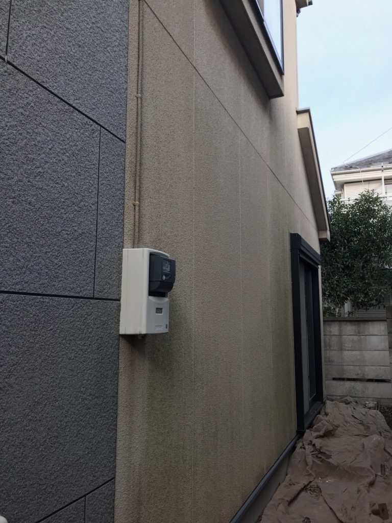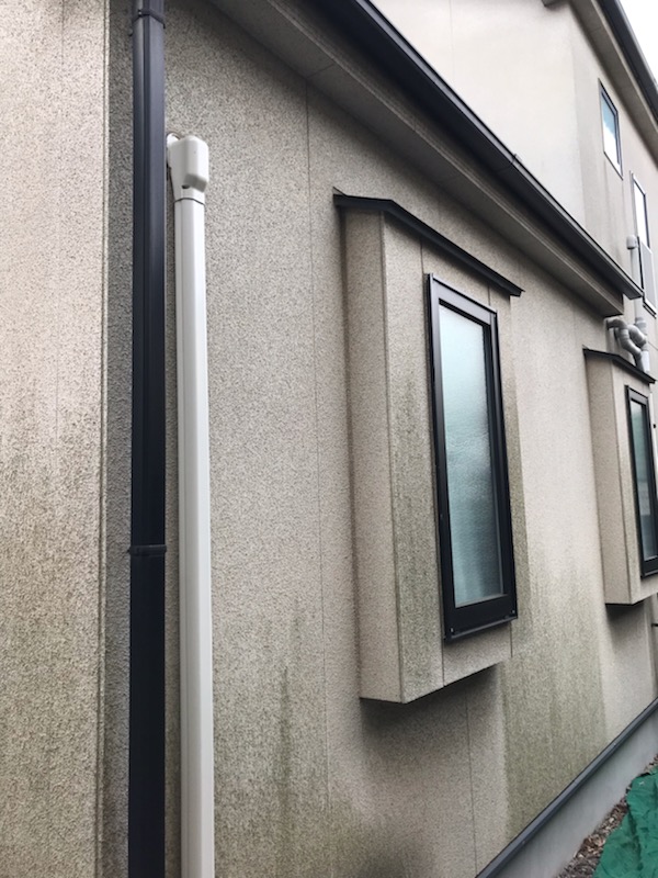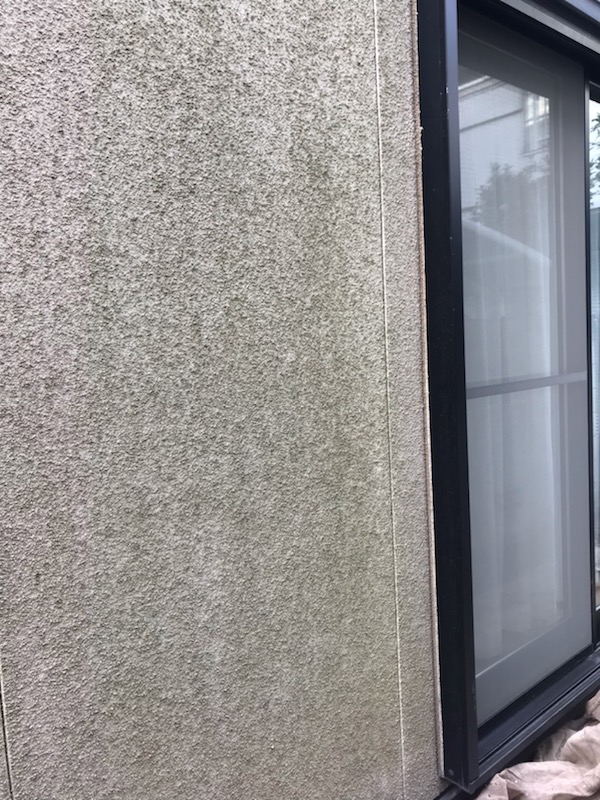 リシン壁部分はカビ等が生えてかなり汚れております。パーフェクトトップの塗装。
