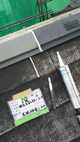 コロニアル屋根 笠木ジョイント部分のシーリング補修。