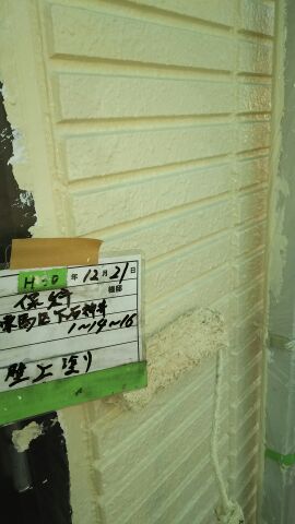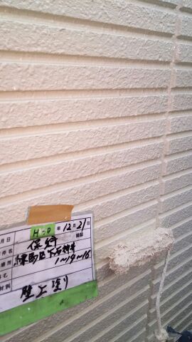 外壁中塗りの続き及び上塗り塗装 パーフェクトトップ 色番号ND104にて施工。
