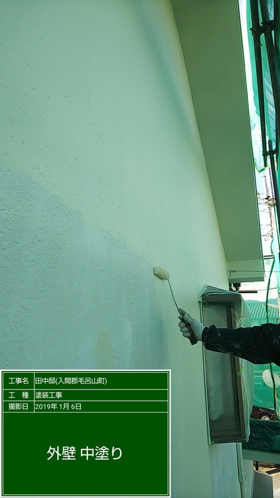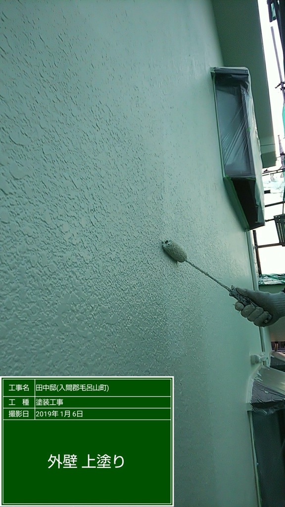 外壁 中塗り及び上塗り塗装 セラミクリーン 色番号SR175。