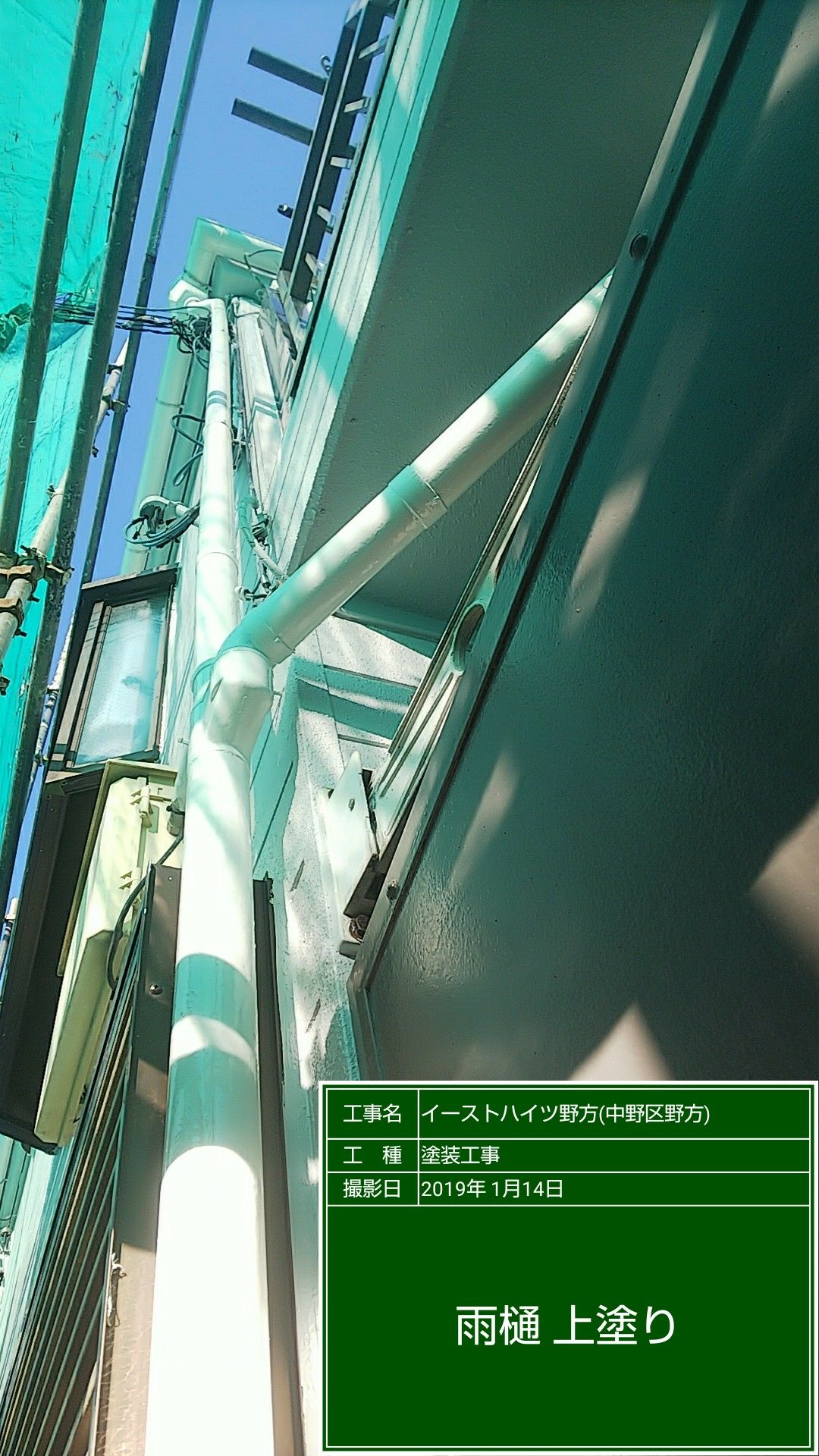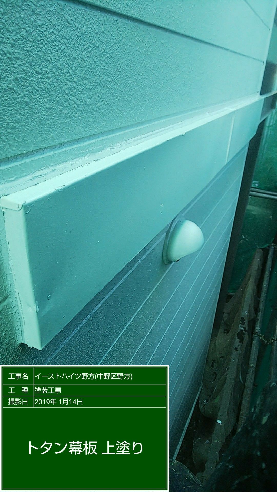 外壁の残り上塗り セラミクリーン N80色番号塗装。