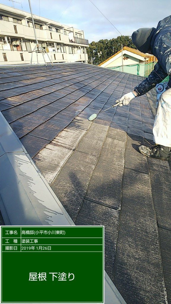 コロニアル屋根のプライマー塗装。