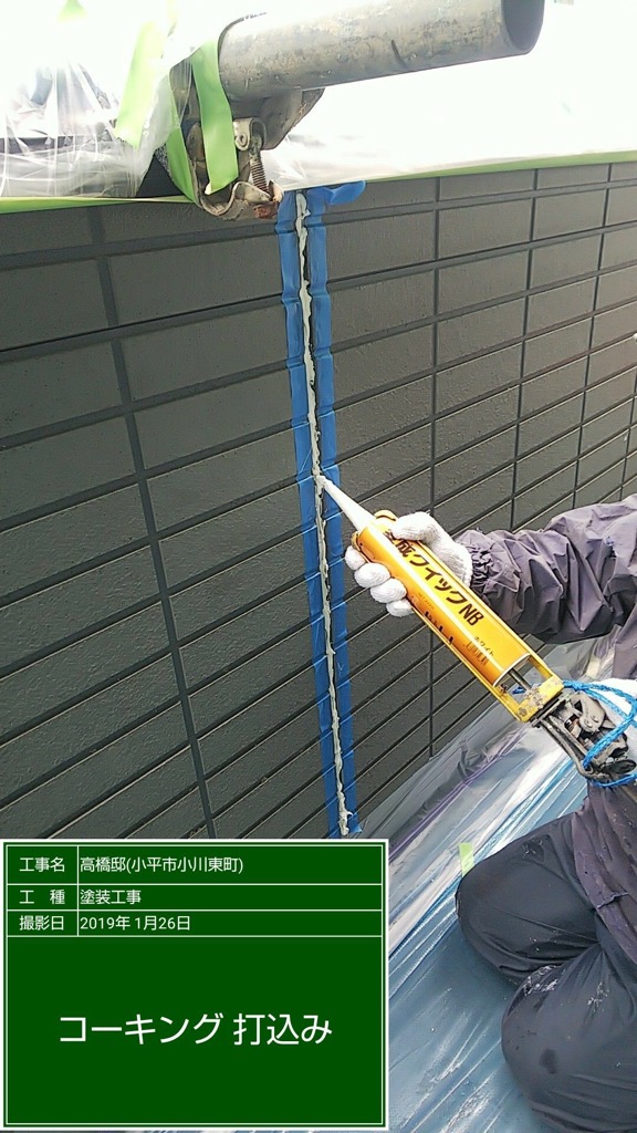 新規コーキングの打ち込み。