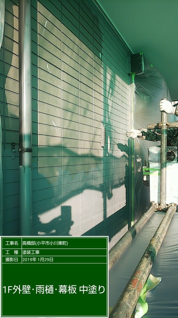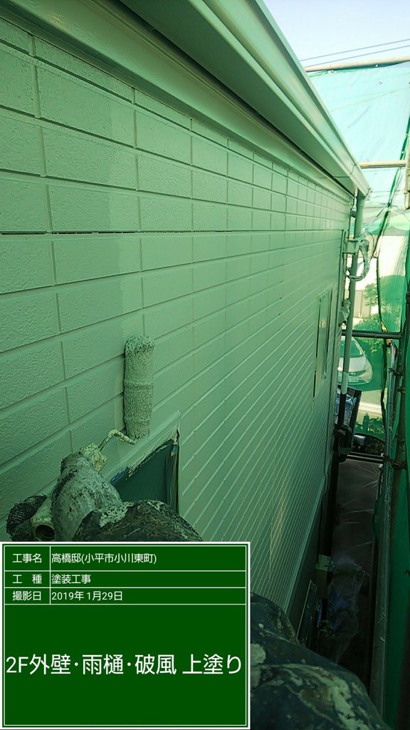 外壁 プレミアムシリコンにて中塗り及び上塗り塗装。