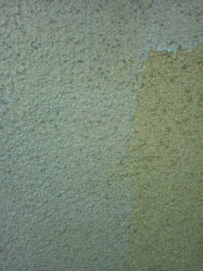 右隣の写真は外壁のプライマー塗りになりますが、おわかりになるでしょうか?少し白濁色になっております。乾けば透明ですが、塗りたては写真のような色をしております。