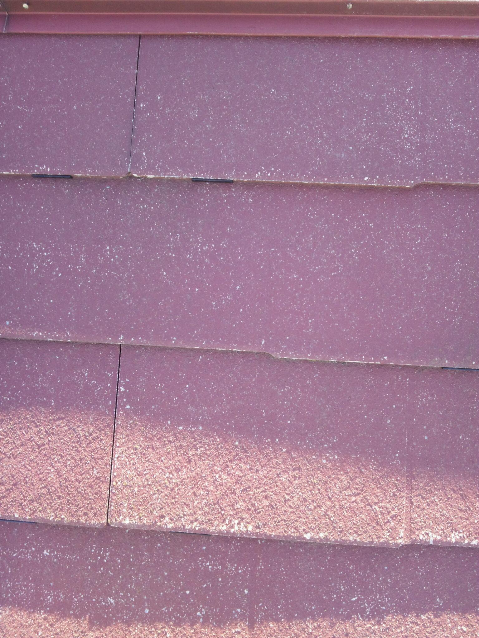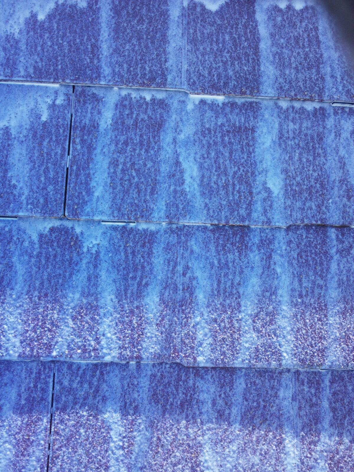 下の写真は塗装前のコロニアル屋根の写真とプライマー塗布後のものです。やはり塗装後すぐは白濁しているのが解ります。