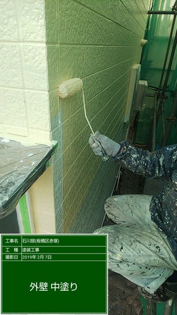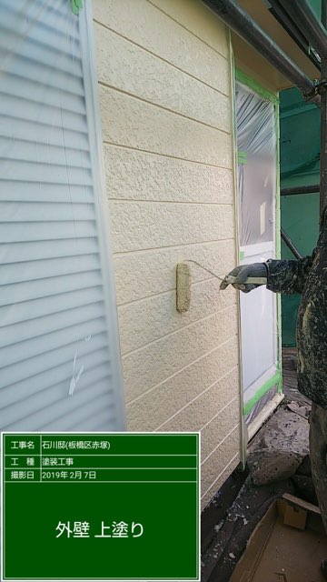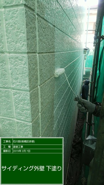 外壁シーラー塗装及び中塗り上塗り塗装。