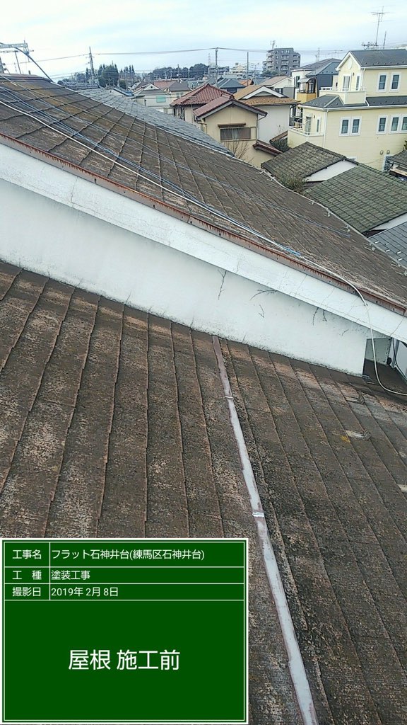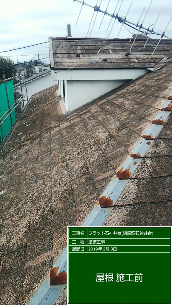 今回はアパート様のコロニアル大屋根と破風板のみの塗装になります。
