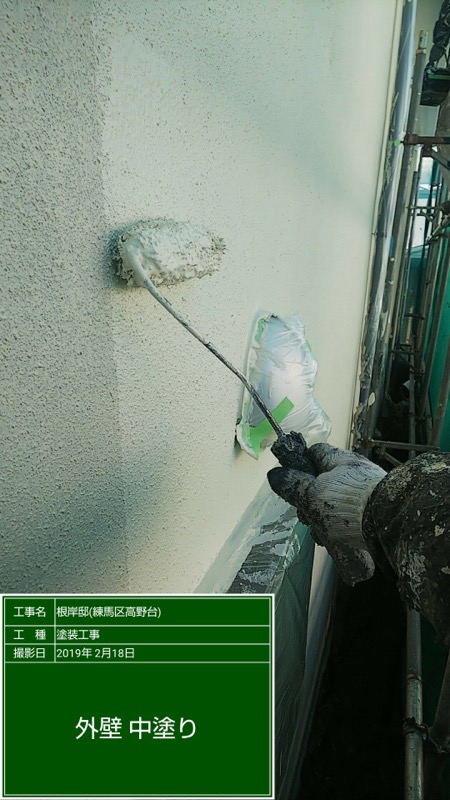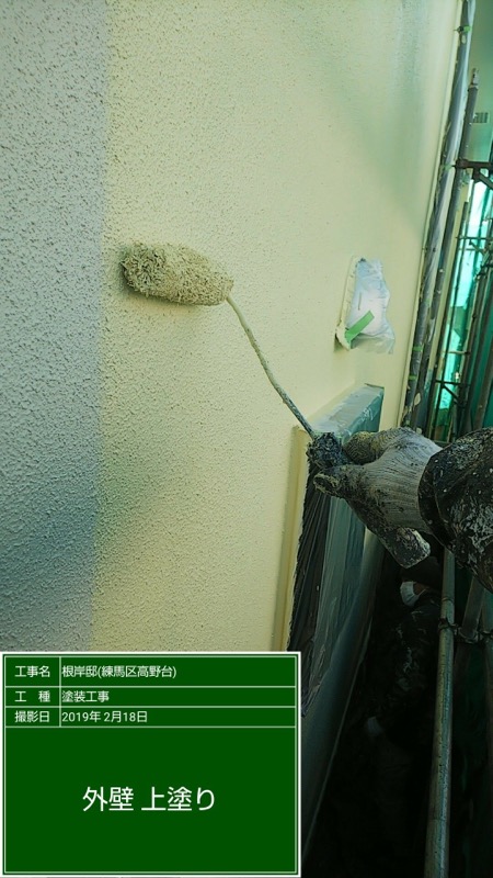 外壁の中塗り及び上塗り パーフェクトトップND250 色番号塗装。