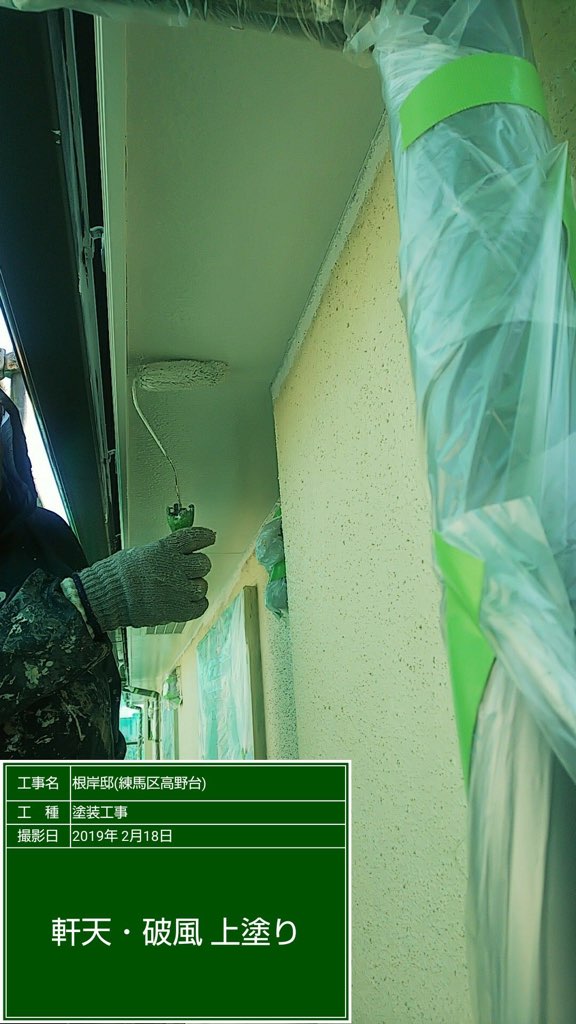 軒天、破風板塗装 ファインウレタン 白系色。