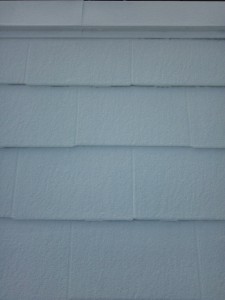 外壁はこの材料の上にクリアートップといい、透明な材料を塗布いたします。