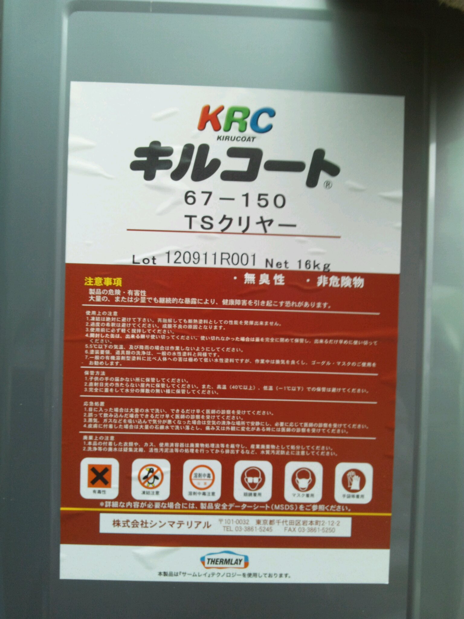 写真の缶はキルコートのクリアーのトップコートです。